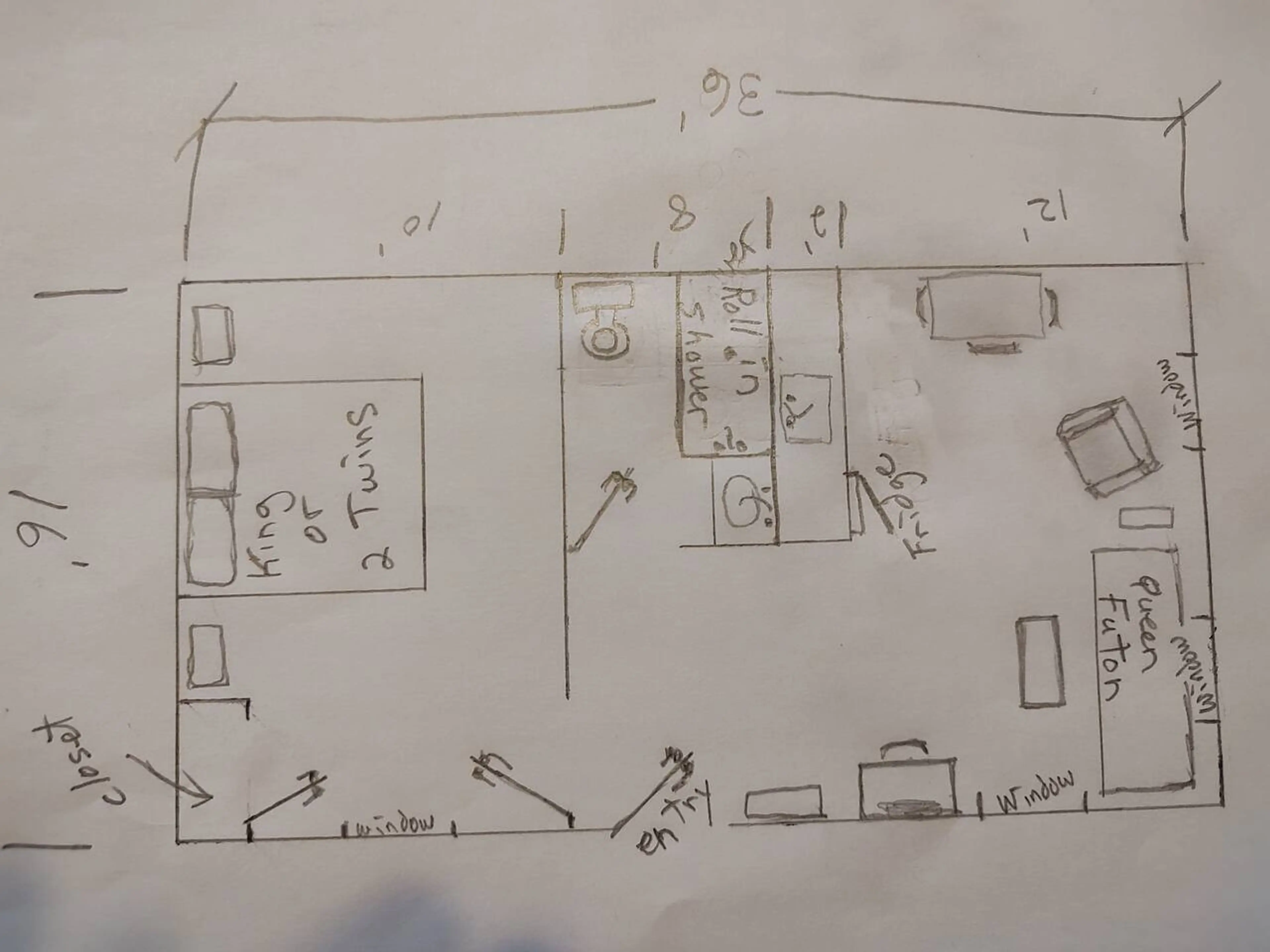 nice little cabin, mostly set up better for heating season than hot summer weather. Air conditioner in bedroom designed to cool the whole cabin was loud and annoying. The gas grill has seen better days.